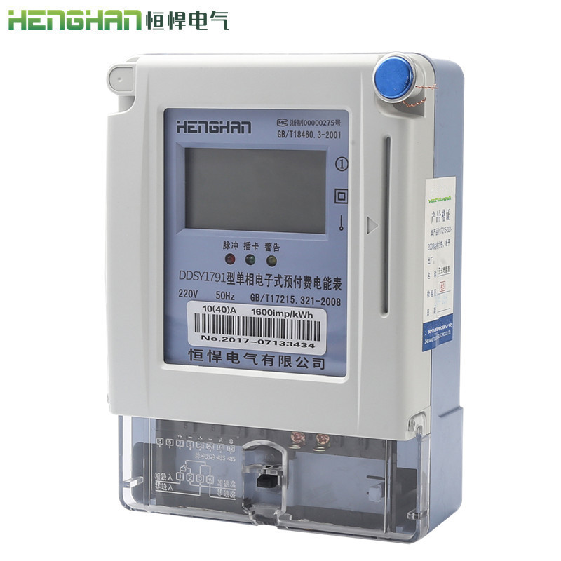 • 恒悍單相預付費電表型號證...